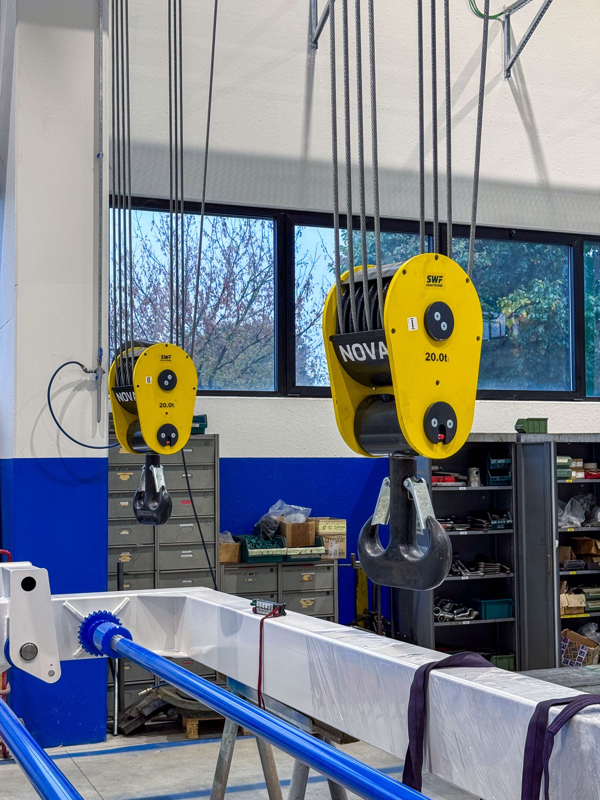 In 2024 Fassi acquired a new 5.000 square meter building dedicated to the assembling of machinery, equipped with a photovoltaic plant, a 40t crane with 12 meters below the crane hook, a painting booth with a capacity of up to 80 cubic meters and a vertical automatic warehouse.